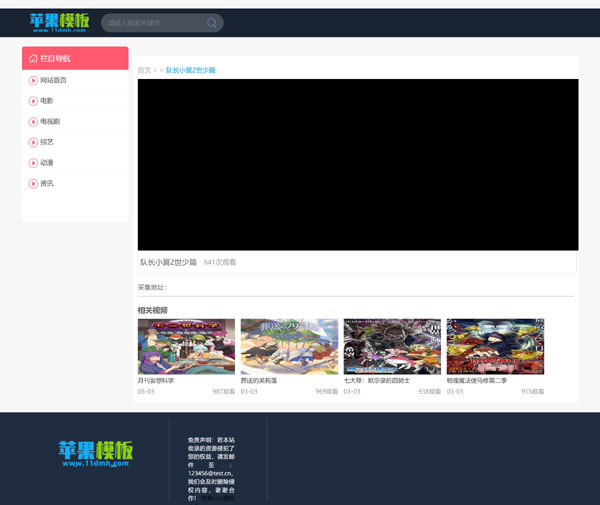 这款黑色电影站/x站电脑手机双端模板,是在红粉电影站/x站自适应模板基础上改进而来,保持了其特色左侧导航栏设计,并优化了配色搭配,使之更加简洁明快。缺点是原始模板并不支持手机自适应设计,没有办法只能额外增加了一套手机端模板,因此其pc、wap风格不是很统一,介意这点的朋友慎下!
