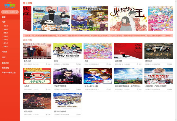 非传统竖版设计,而是与红粉电影站/x站自适应模板一样,大胆采用了左侧导航栏,区别在于之前粉色,而这套模板是其基础上的红色设计,当然在一些细节上也有些许差异,清理了原模板首页版权风险提示,以及播放页无法显示播放器BUG,均已经修复!下载后可以直接使用。