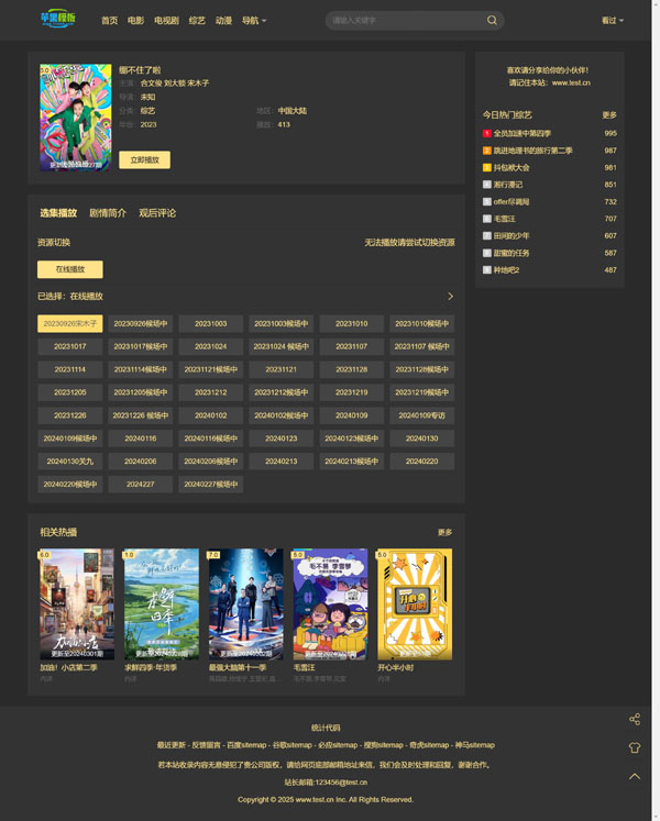 该模板历经了多次升级,目前的是精简后的简约版本,拥有更快的页面打开速度,特别适用于影视站!代码支持pc、wap自适应访问,推荐模板!