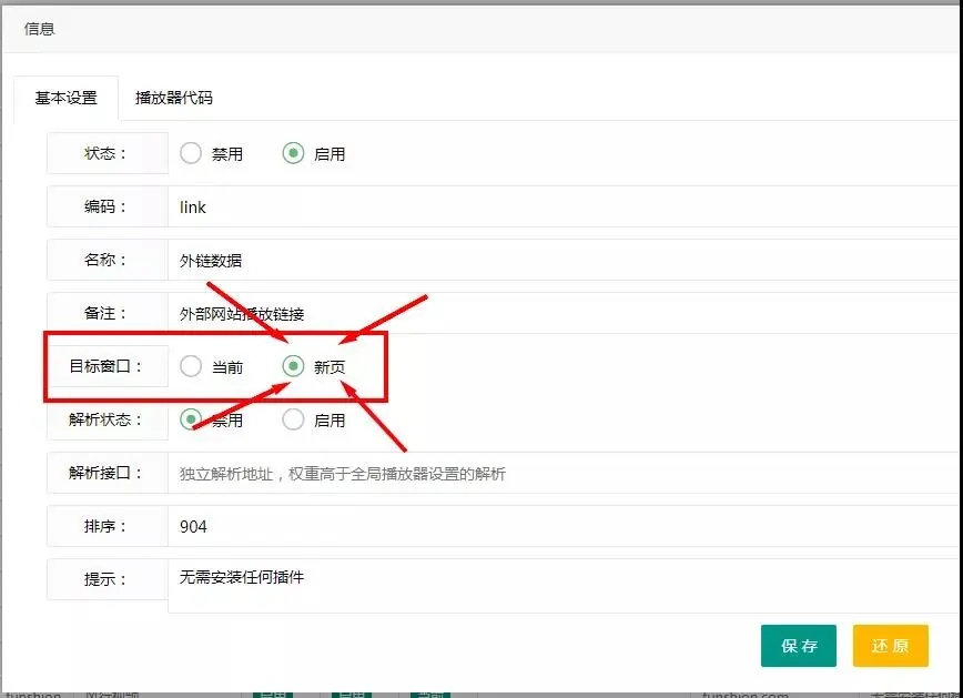 这样,在你点击播放的时候,页面将会打开一个新窗口,跳转到你设置的视频播放页。
