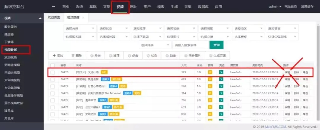 依次找到“视频-视频数据”,选择自己要修改的电影,点击“编辑”;