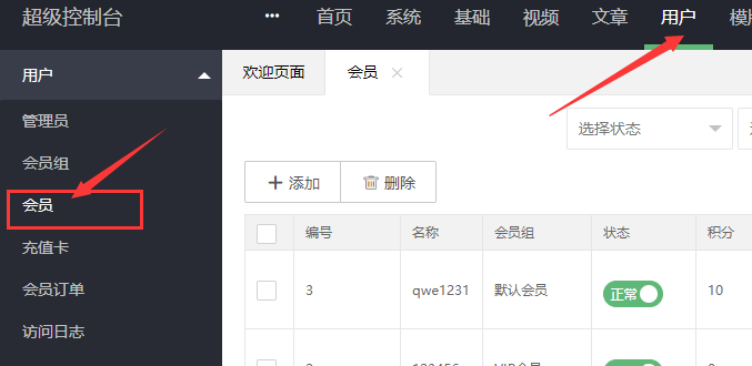 设置完毕后,进行视频积分设置,来到视频,视频数据管理