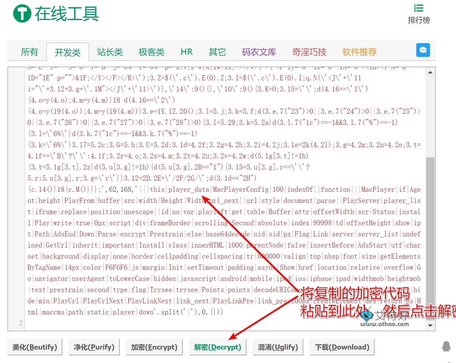2. 打开js解密网站:https://tool.lu/js/ ,将加密的代码粘贴到此处,并点击解密