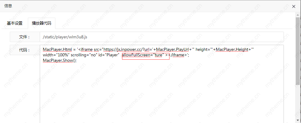 来到苹果cms系统后台---视频---播放器---找到你所使用的播放器然后进入编辑