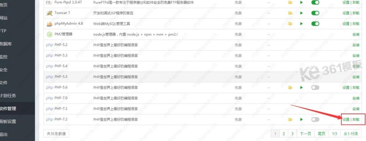 【2】选择你安装的PHP版本,打开设置我用的是7.2版本 你要看下自己的php版本
