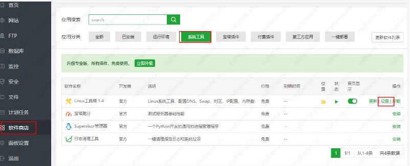 宝塔面板操作步骤如下:软件商店----系统工具---linux工具箱设置