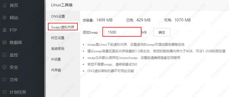 swap/虚拟内存 填写1500MB 即可。
