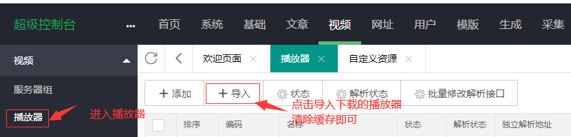 注意:采集资源后,播放片源没有自动选择对应的数据,这种情况通常是因为没有添加对应的播放器导致。 需要先再网站后台添加对应的播放器,才可以实现播放。一般采集站点都会提供自己的播放器,下载解压后的文件播放器是 txt 文件