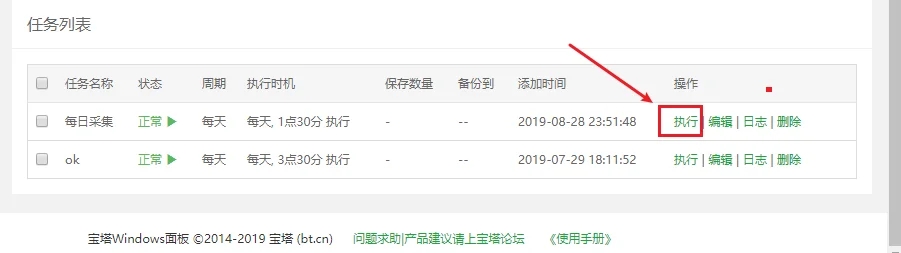 7,最后,点击执行后,网站即可实现自动定时采集,相关过程可在日志中进行查看.所以一个完整的定时采集任务也已设置完成。