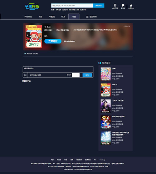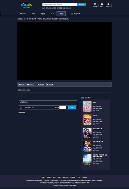 专门为动漫网站而设计的模板,带有动漫站特有的番剧更新表,首页带幻灯片、带周一至周日更新表、带会员中心、留言、评论等功能。