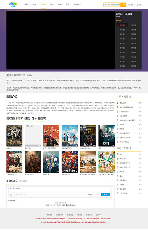 首页、分类、筛选、详情、播放页、会员中心、历史记录、热门单榜页