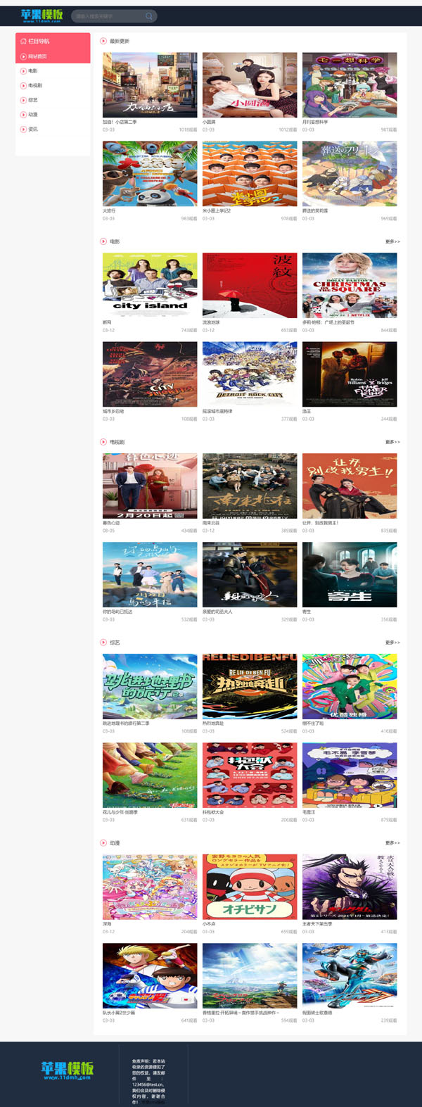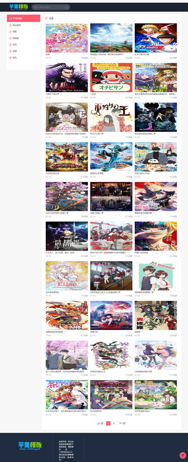 这款黑色电影站/x站电脑手机双端模板,是在红粉电影站/x站自适应模板基础上改进而来,保持了其特色左侧导航栏设计,并优化了配色搭配,使之更加简洁明快。缺点是原始模板并不支持手机自适应设计,没有办法只能额外增加了一套手机端模板,因此其pc、wap风格不是很统一,介意这点的朋友慎下!