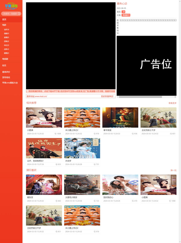 非传统竖版设计,而是与红粉电影站/x站自适应模板一样,大胆采用了左侧导航栏,区别在于之前粉色,而这套模板是其基础上的红色设计,当然在一些细节上也有些许差异,清理了原模板首页版权风险提示,以及播放页无法显示播放器BUG,均已经修复!下载后可以直接使用。