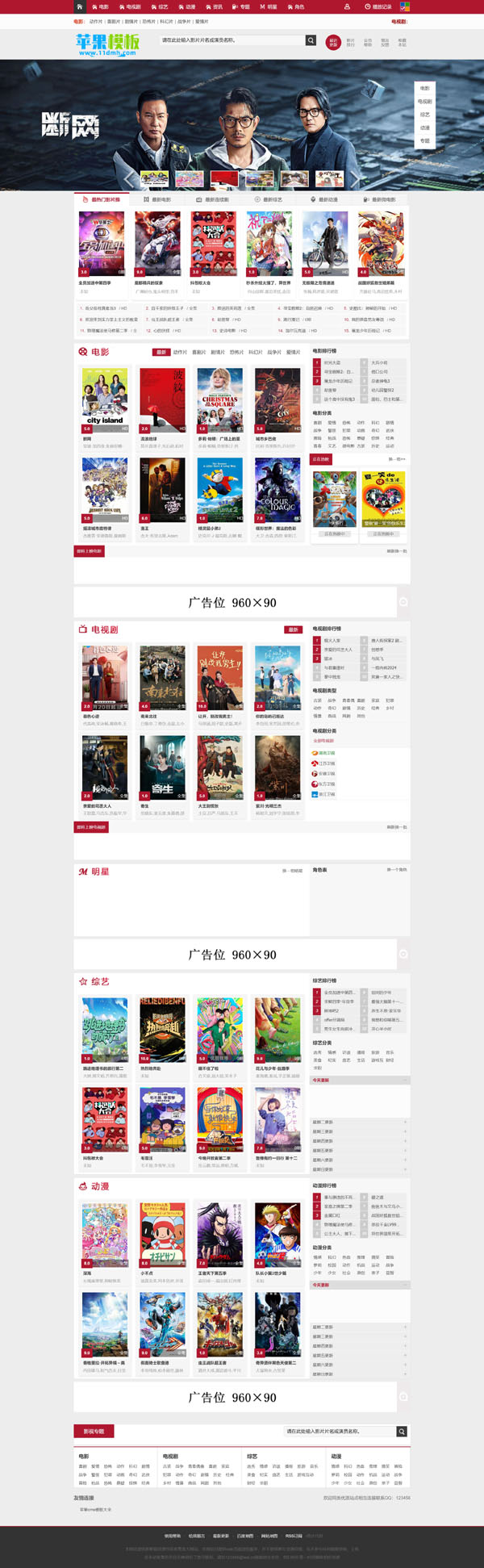 这款红色影视门户风格模板,是我从网上浏览时候发现。但是原始模板太老了,压根不支持移动端显示,因此花了一些时间,将网站仿站下来后,进行了移动端改造,目前为pc\wap双端模板,可以满足喜欢红色影视模板站长需要。其实即便不喜欢红色也无所谓,模板自带了蓝色、绿色、红色、黄色多套颜色皮肤,可以自己在右上角选择。