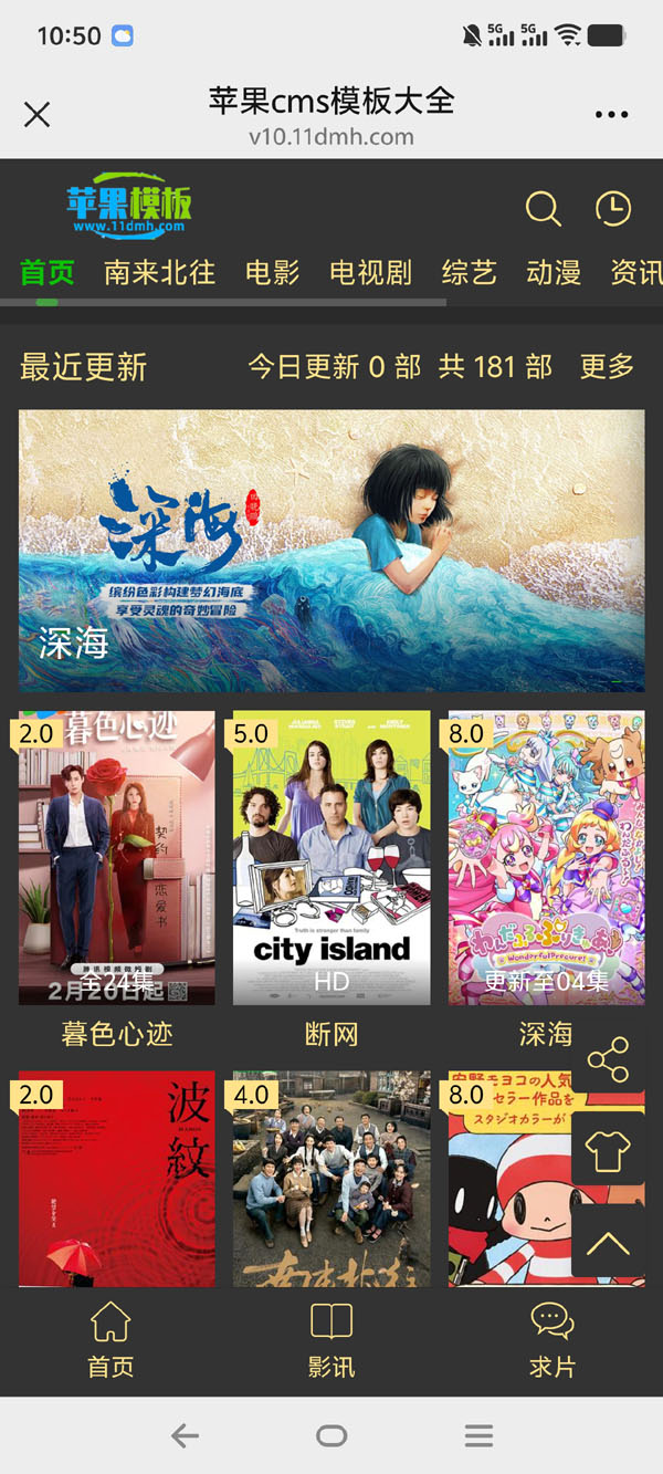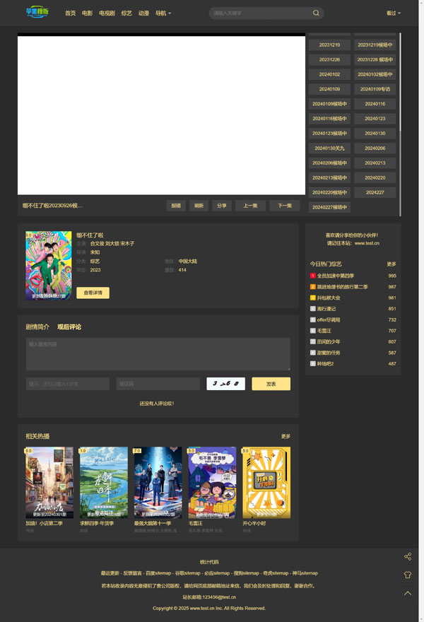 该模板历经了多次升级,目前的是精简后的简约版本,拥有更快的页面打开速度,特别适用于影视站!代码支持pc、wap自适应访问,推荐模板!