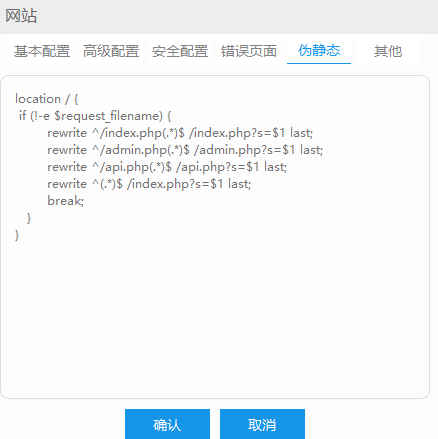 其次根据说明文档中配置的伪静态,例:如果是Nginx 就复制maccms.conf中的内容