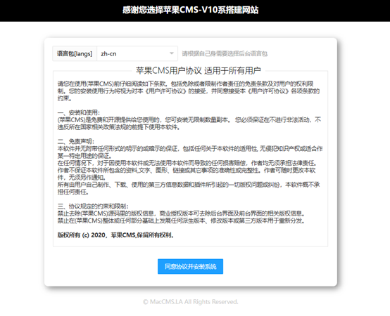 访问域名后一件安装页面。