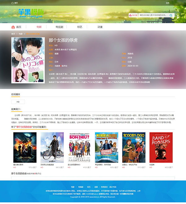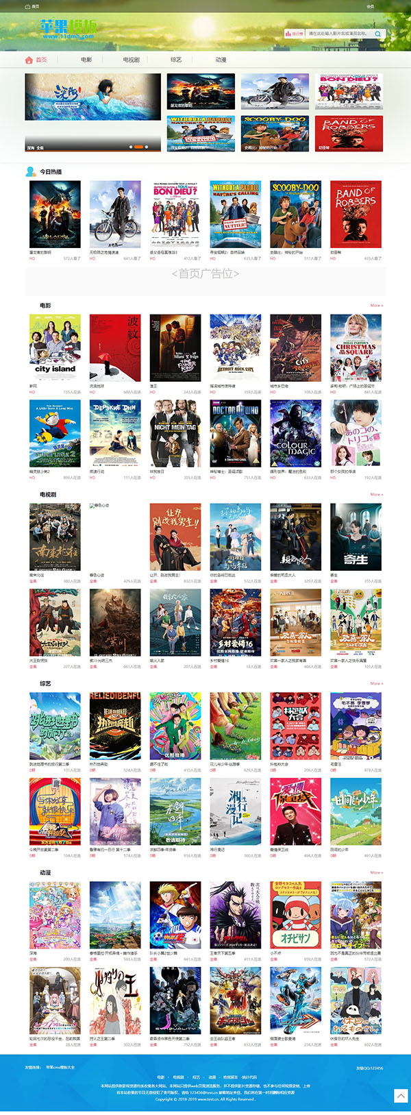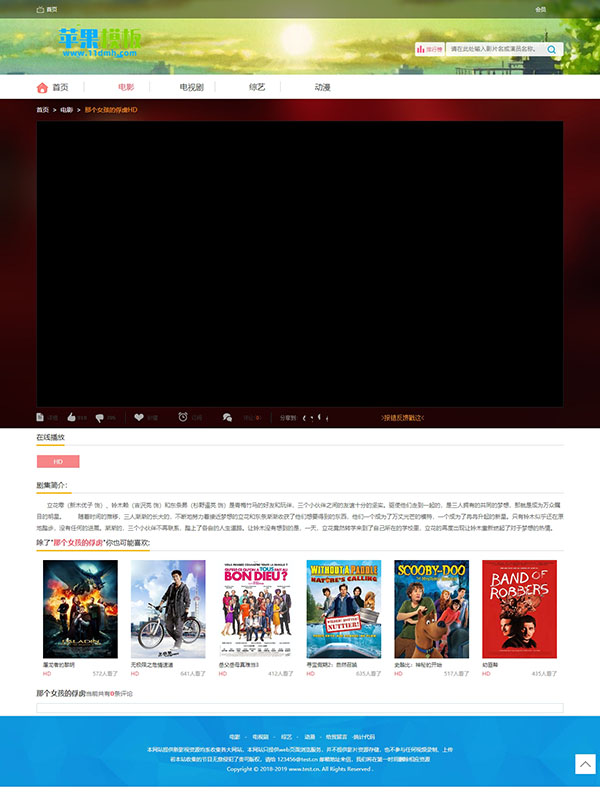 这是一款追求清新简约风格为目标,设计而成的影视网站模板。首页采用小幻灯片+通栏设计,简约了版面提高了网站打开速度,整体版面干净简洁,让人浏览起来比较舒服。