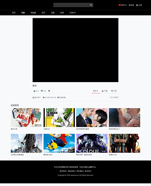 经典黑色简约风格、删除了侧栏设计,最大化凸显影视内容。页面结构简单,只有首页、列表、播放页,无详情页。已删除原模板存在的暗链,并修复会员模板部分,目前可以正常使用。