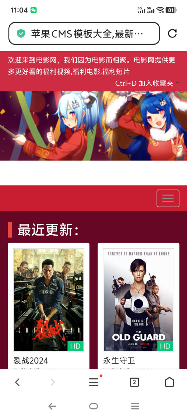 这款模板是应站长要求,专门为动漫站设计,采用了热情似火红色影视风格,并加入了动漫元素,特别适用于动漫站,当然影视站也完全没有问题。网络上有该模板的老版本,只是老版本过于陈旧,已进行了图片及代码优化处理,可显著提高浏览速度,并增加了首页移动端适配,以满足现在的做站需要!