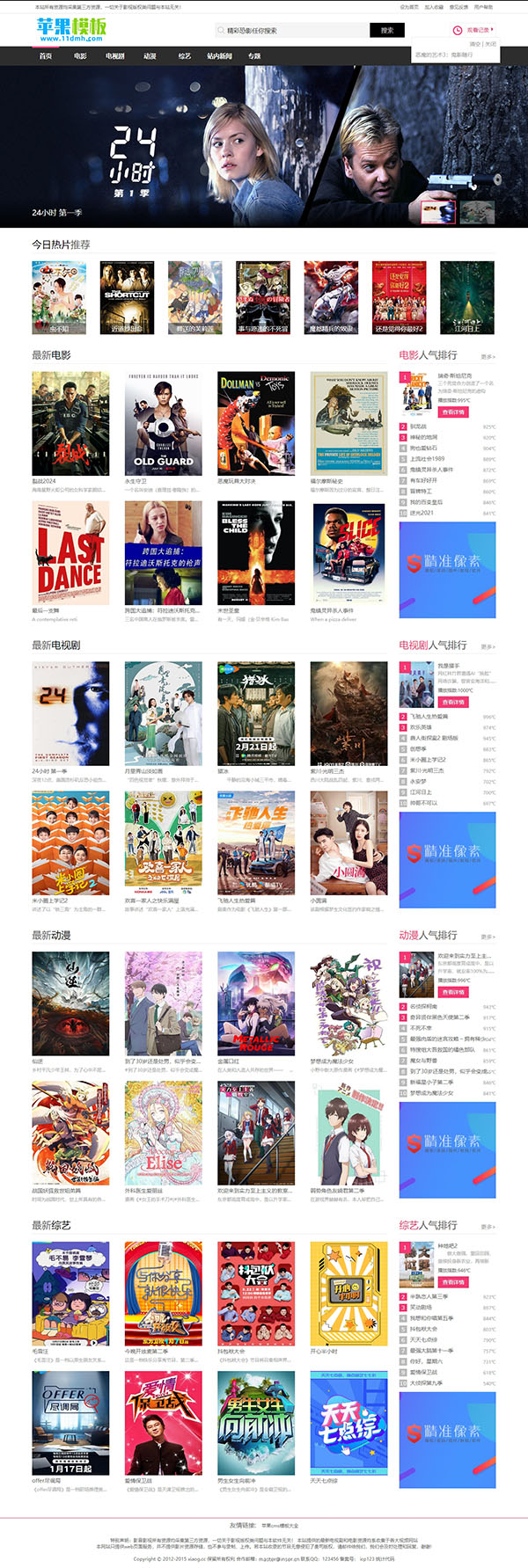 该影视模板采用黑色与红色撞色设计,在黑色沉稳大气之余,平添了红色俏丽,可谓是美观大气。且模板支持导航栏跟随滑动,大大提高用户查找效率。并且预留足够版面广告位置。不过原模板并不支持wap移动端访问,特意增加了适配移动端模板,安装时候参考下面教程即可。