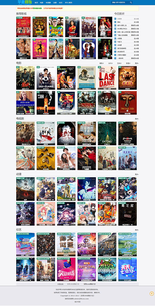 蓝色经典影视风格,界面美观大方,同时该模板是苹果cms8少有,代码支持pc、wap自适应访问的。经多轮测试,目前完美运行,推荐模板!