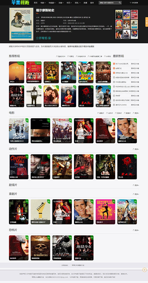 这款模板已经完美无错,删除了部分失效代码,模板包含影视模块和新闻模块,模板包含畅言的评论代码,不需要的可以删除,具体大家看演示截图就行。